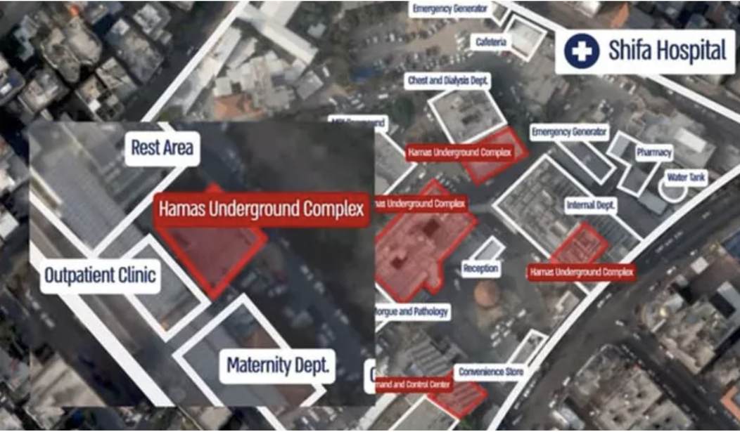 Hamas’ headquarters are, conveniently, located at and below the largest hospital in Gaza. Israel revealed this recently, but everybody in the MSM knew it long ago.