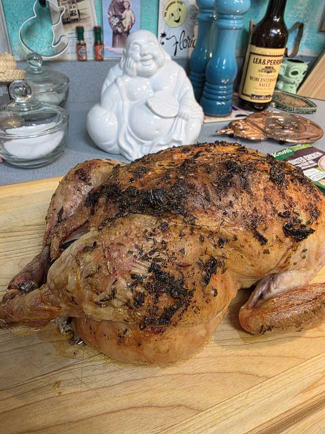 (This bird came already trussed, so that's why the legs are tucked under.)