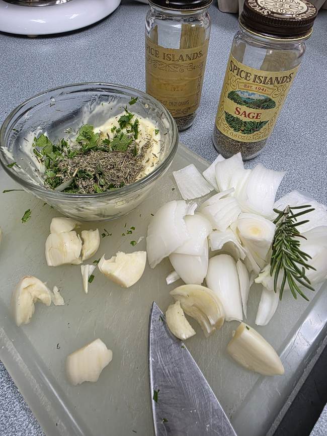 • The herb mix I use in the butter schmear is what I use for our Thanksgiving turkey, too - no 'poultry spice' out of a can here
