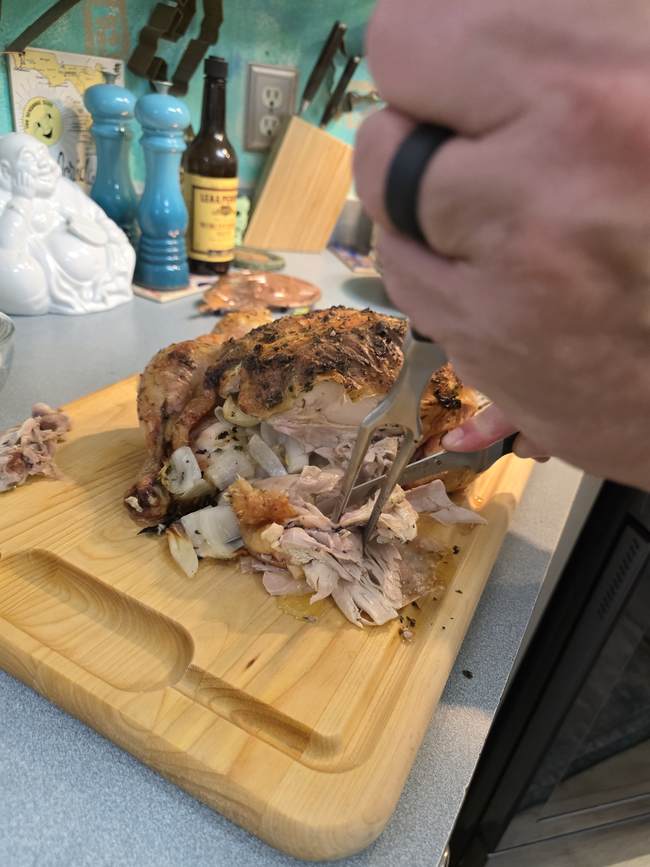 • If they haven't been tipped, I tuck the wings under the bird to make its own little solid base instead of using a rack
